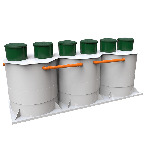 Подводящий патрубок очистного сооружения расположен на расстоянии 583 мм от поверхности грунта до ложа трубы, отводящий патрубок расположен на расстоянии 743 мм от поверхности грунта до ложа трубы.