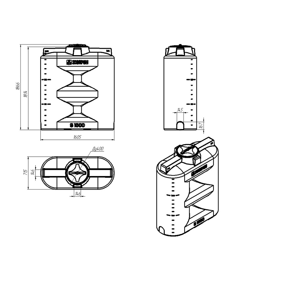 Емкость S 1500 New – резервуар объемом 1500 литров, предназначенный для хранения и транспортировки веществ плотностью до 1,0 г/см³ включительно, таких как: